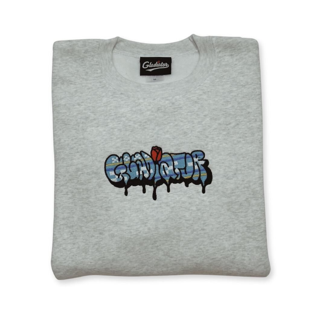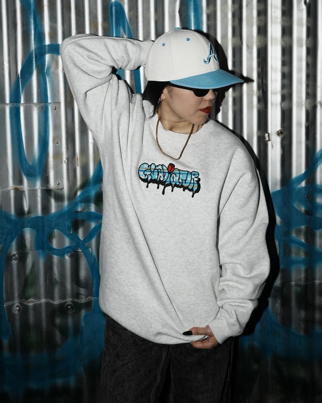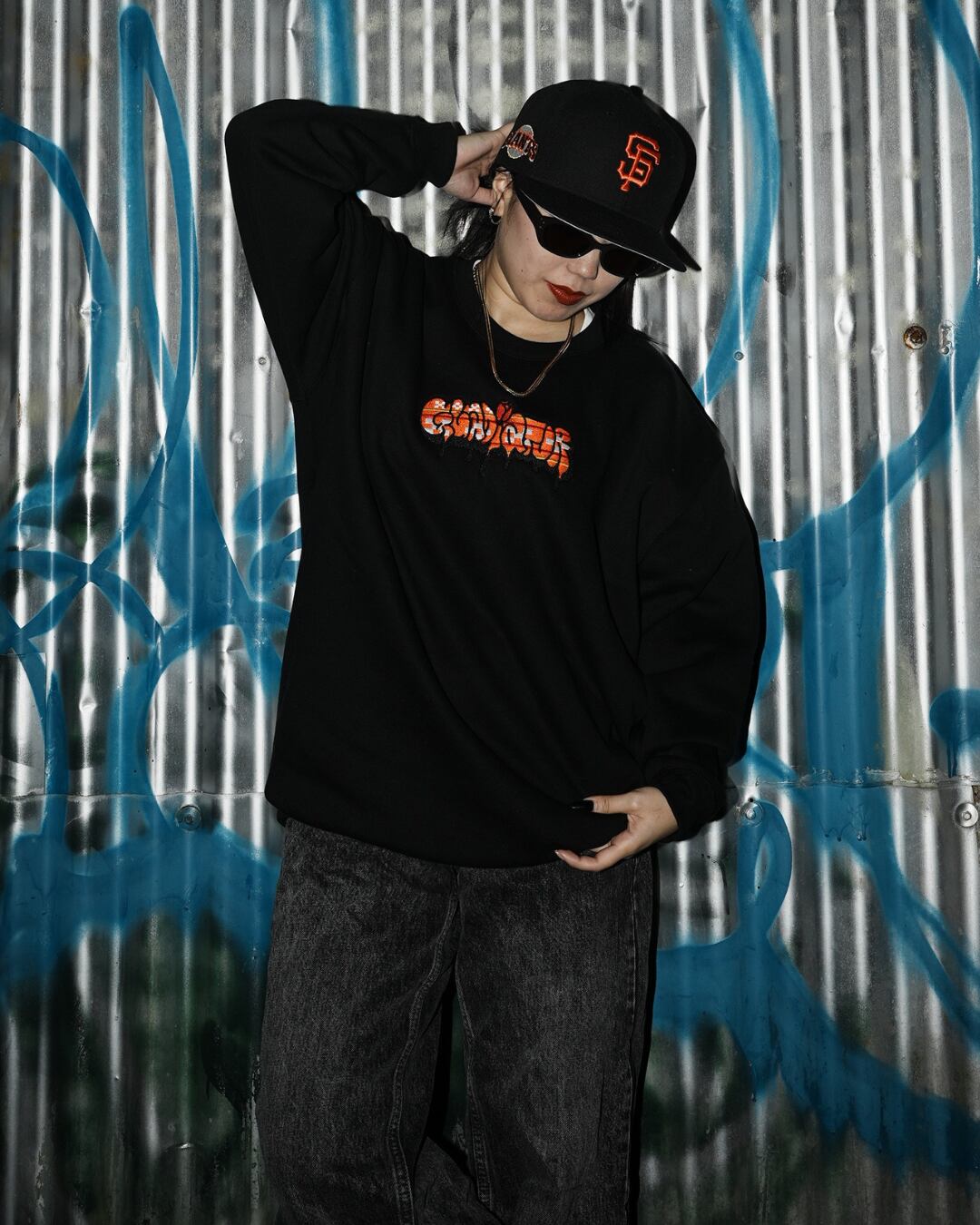 Gladiator文字をGraffitiで描かれたロゴの中に、沖縄伝統の「ミンサー」を刺繍で表現した商品。