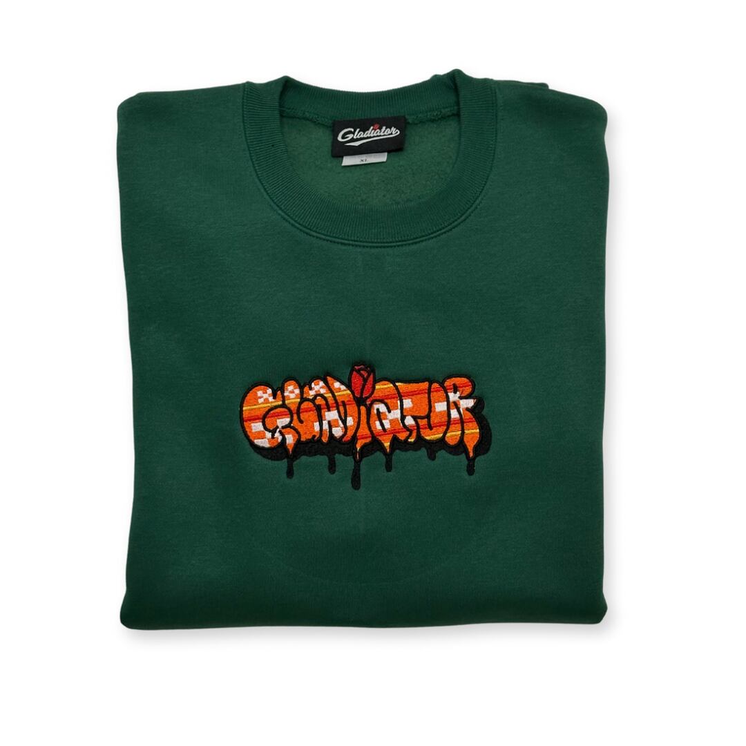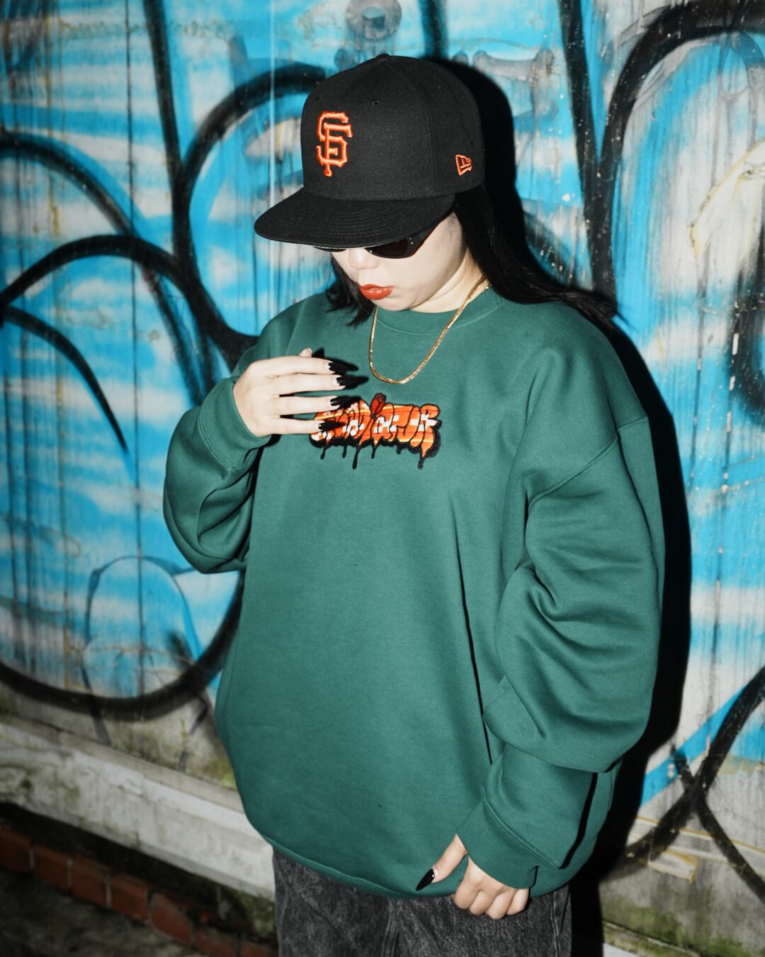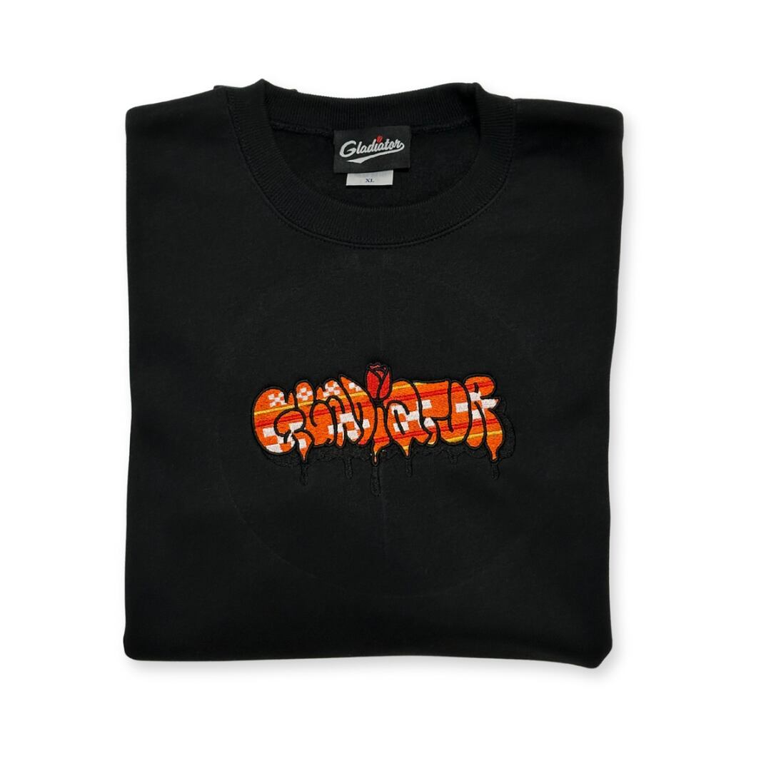 Gladiator文字をGraffitiで描かれたロゴの中に、沖縄伝統の「ミンサー」を刺繍で表現した商品。