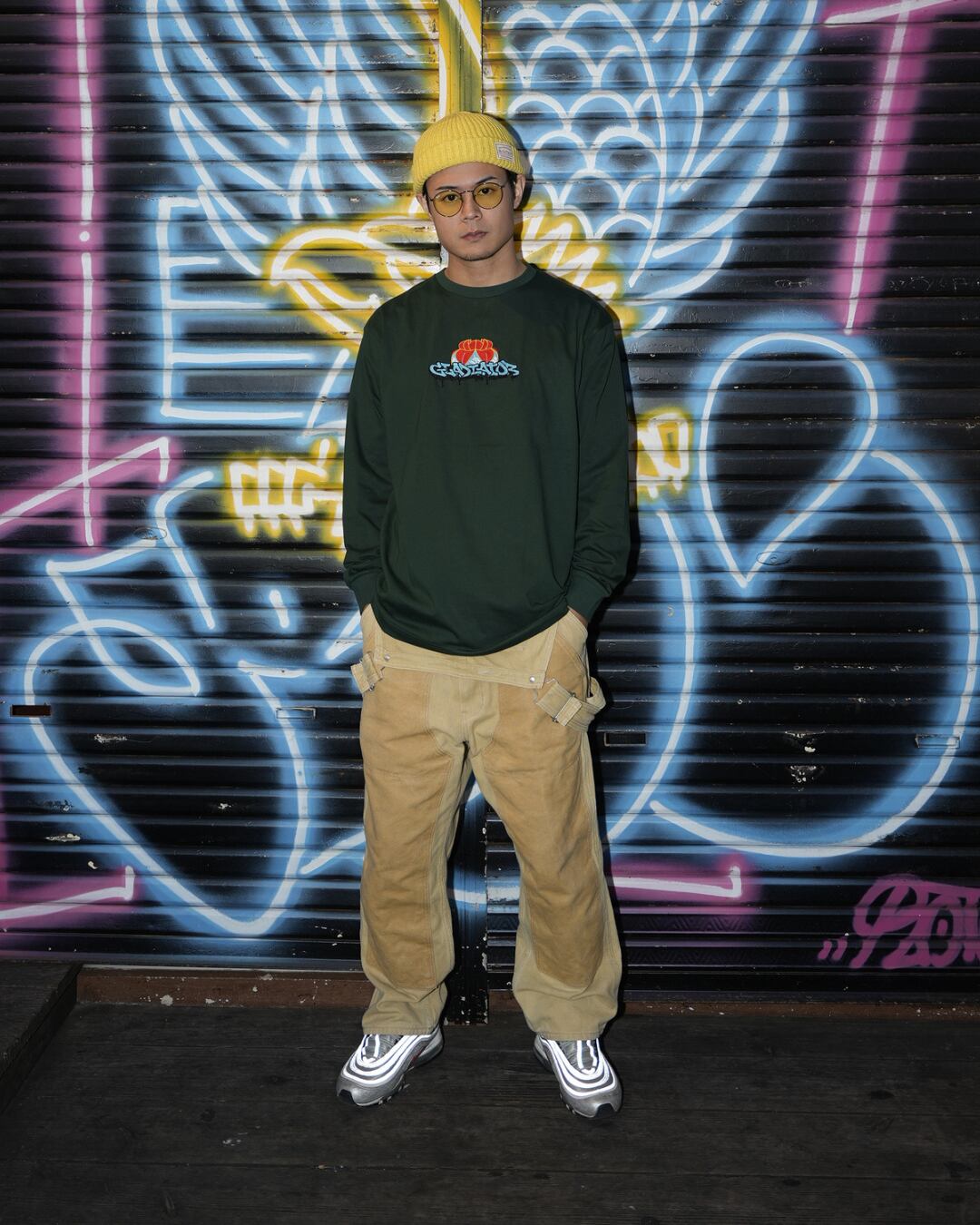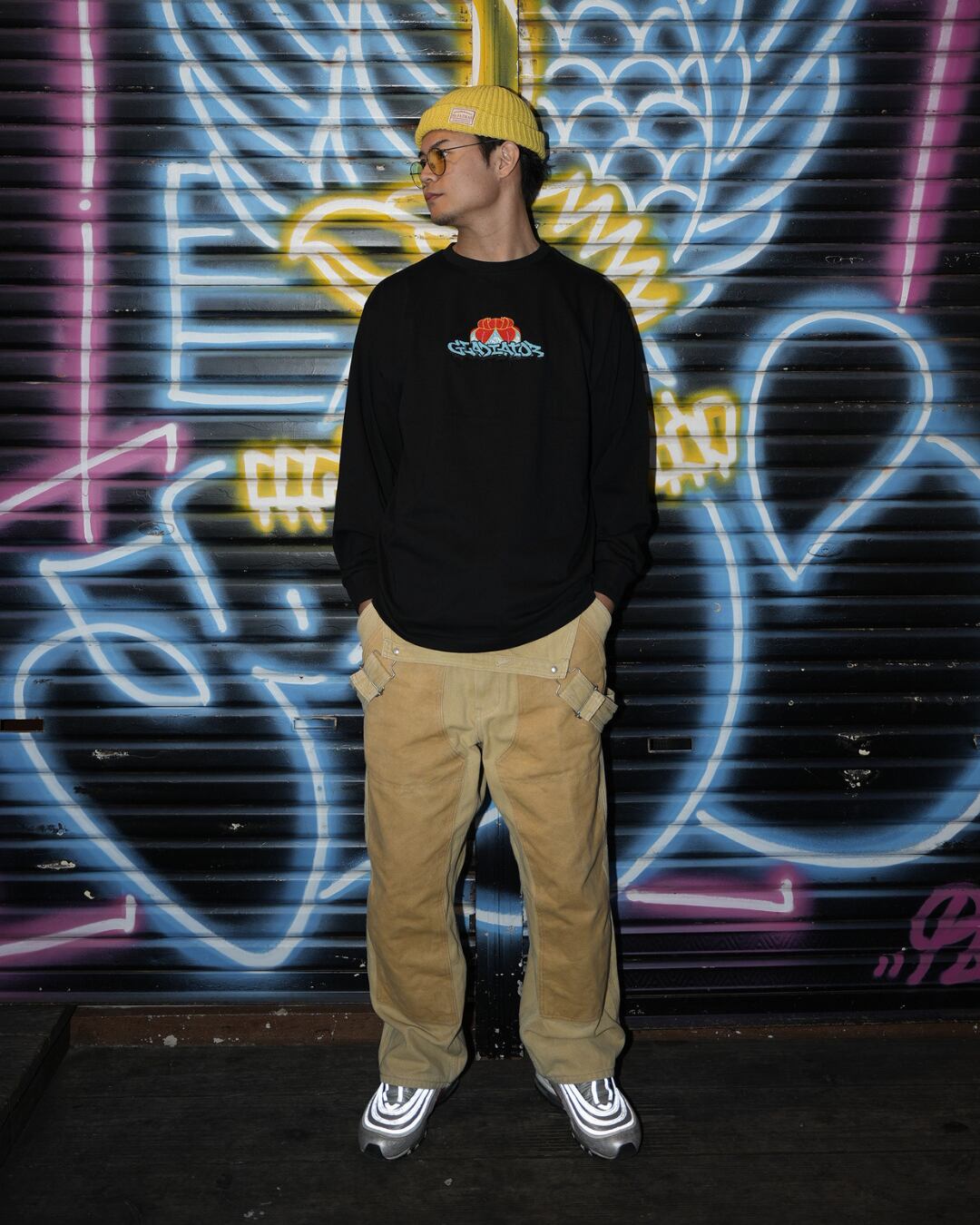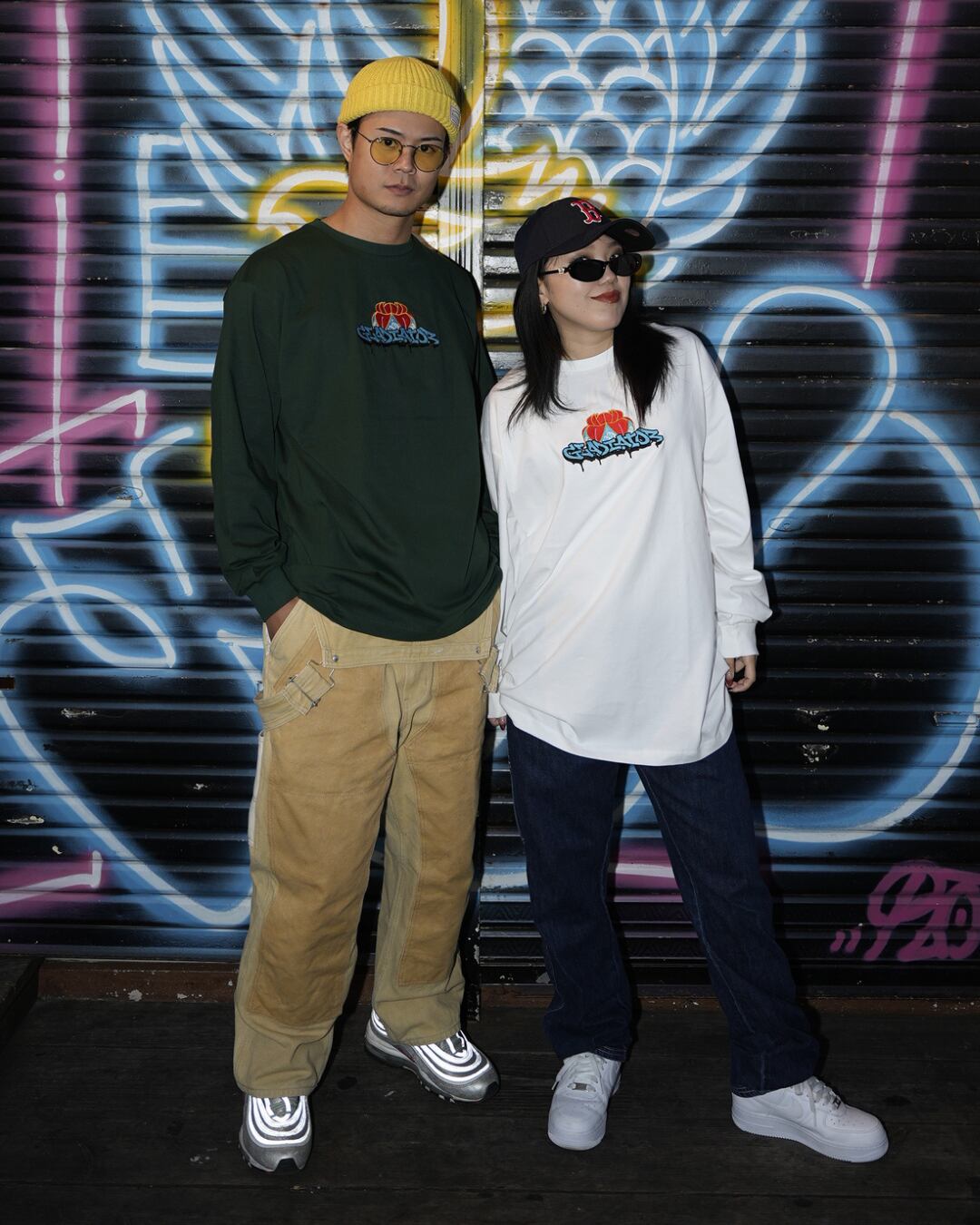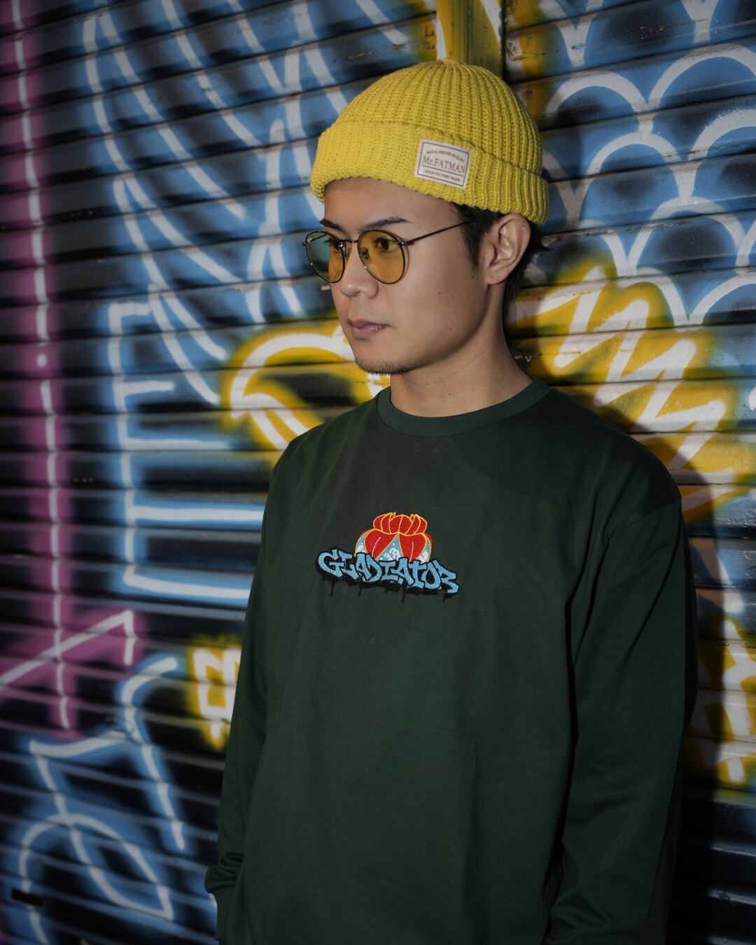 沖縄の花笠とGraffitiで描かれたGladiatorの文字を融合したデザインを刺繍で表現しました。